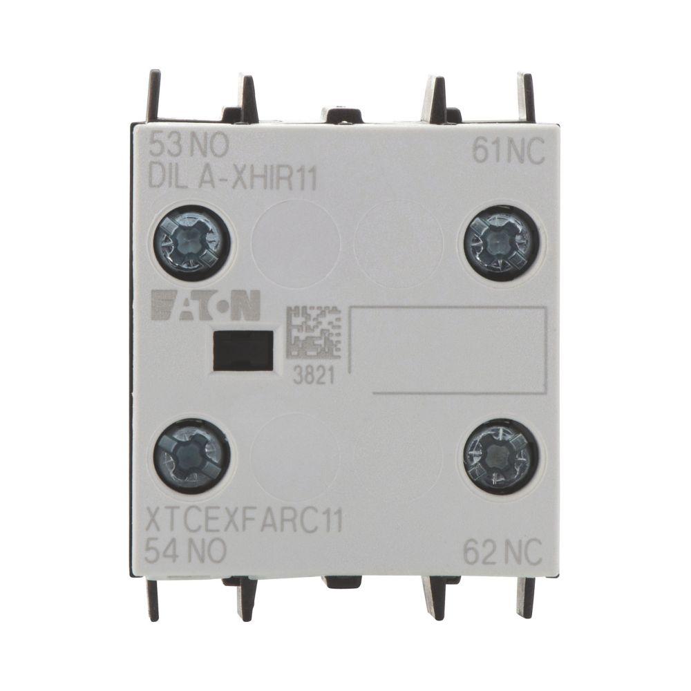 This is Auxiliary Contact - 1NC + 1NO 2 Contact Front Mount 10 A dc 4 A ac manufactured by Eaton. The manufacturer part number is 110140 DILA-XHIR11. The integrated contact has 220 v dc, 500 v ac of voltage rating. Whereas, the minimum operating temperature of the product is -25°c. The product has -25 → +60 °c of operating temperature range. The rated contact current is 10 a dc, 4 a ac. The product eaton moeller, is a highly preferred choice for users. It has 2p pole and throw configuration. The product is available in front mount style. The normal state configuration includes 1nc + 1no. The product contains 2 contacts. It has a maximum operating temperature of +60°c. The terminal is a screw type.