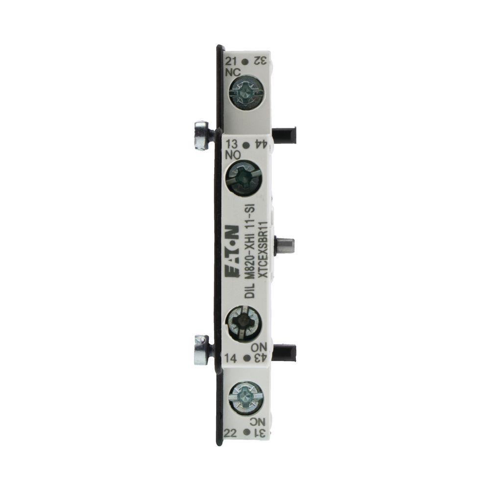 This is Auxiliary Contact - 1NC + 1NO 2 Contact Side Mount 4 A ac 10 A dc manufactured by Eaton. The manufacturer part number is 208281 DILM820-XHI11-SI. The integrated contact has 220 v dc, 500 v ac of voltage rating. Whereas, the minimum operating temperature of the product is -40°c. The product has -40 → +60 °c of operating temperature range. The rated contact current is 4 a ac, 10 a dc. The product eaton moeller, is a highly preferred choice for users. It has dpst pole and throw configuration. The product is available in side mount style. The normal state configuration includes 1nc + 1no. The product contains 2 contacts. It has a maximum operating temperature of +60°c. The terminal is a screw type.