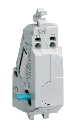 This is Shunt Release Plug In manufactured by Hager. The manufacturer part number is HXA004H. The product is available in plug in style. The product hxa, is a highly preferred choice for users. The integrated contact has 240 v ac of voltage rating. The terminal is a screw type.