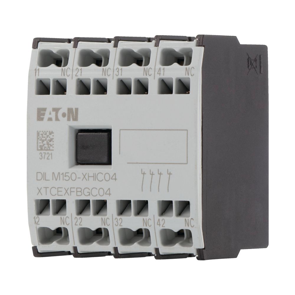 This is Auxiliary Contact 4 Contact 4 NC Front Fastening DILM manufactured by Eaton. The manufacturer part number is 278048 DILM150-XHIC04. The product is available in front fastening style. The product eaton moeller series, is a highly preferred choice for users. It features dilm range. The product contains 4 contacts. The normal state configuration includes 4 nc.