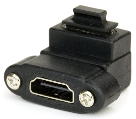 This is Clever Little Box Right Angle AV Adapter Female HDMI to Female HDMI manufactured by RS PRO. The manufacturer part number is 124-2516. In addition, it has 1 end 1 connectors . It has a high-quality female hdmi (1) end 2 . It has a decent black colour. It a/an female hdmi (1) end 1 . It converts to hdmi type . It converts from hdmi type . The product also features robust pvc housing material. It has 1 end 2 connectors . It converts to female gender . It comes in hdmi configuration. It has right angle body orientation. It converts from female gender .