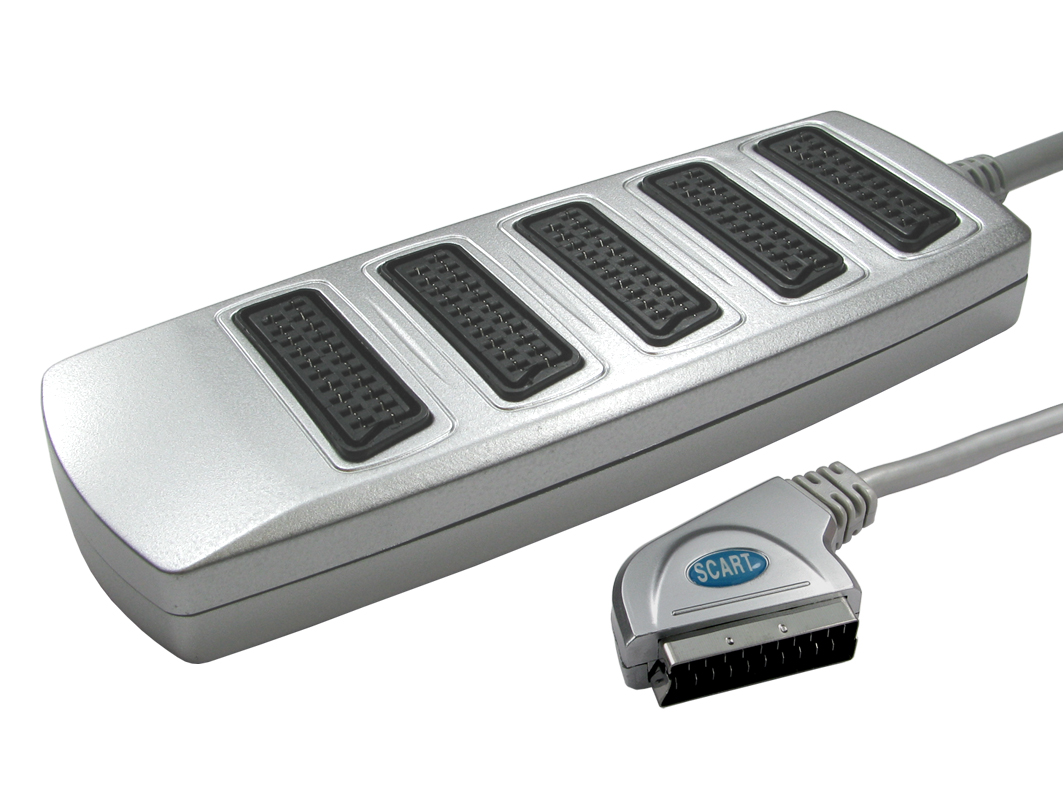 This is A/V Connector Adapter Male SCART to Female 5 x SCART manufactured by RS PRO. The manufacturer part number is 266-2202. In addition, it has 1 end 1 connectors . It has a high-quality 5 x scart end 2 . It has straight body orientation. It a/an male scart (1) end 1 . It converts to 5 x scart type . It converts from scart type . The product also features robust plastic housing material. Its accurate length is 400mm. It has 5 end 2 connectors . It converts to female gender . It comes in splitter box configuration. It has a decent silver colour. It converts from male gender .
