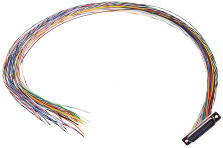 This is Cable assembly 37 Way Female Micro D-Sub to Free End Free End manufactured by Glenair. The manufacturer part number is MWDM2L-37S-6E5-18. While the connector B is free end. It is a typical insulated cable. The connector A is 37 way female micro d-sub connector.
