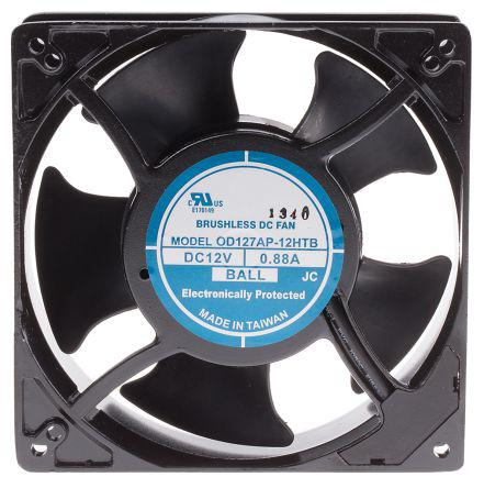 This is DC Axial Fan 127 x 127 x 38mm 238m³/h 11.88W 12 V dc (OD127AP Series) manufactured by RS Pro. The manufacturer part number is OD127AP-12HTB. The product has a 0.41in/h2o static pressure. The given dimensions of the product include 127 x 127 x 38mm. It also carries 880ma maximum current. It features a noise level of 46db. The product od127ap, is a highly preferred choice for users. It operates through dc. This has integrated with a ball, a bearing with long-lasting features. In addition, the height is 127mm. Furthermore, the product is 127mm wide. The product comes in 38mm depth. Its power consumption is approximately 11.88w . It has a 238m³/h air flow rate. Features 12 v dc supply voltage. The product is designed with a terminal termination. Its fan speed is about 3200rpm . The product also provides special features, such as auto restart motor, brushless dc, locked rotor protected, polarity protected. The product is available in square configuration.