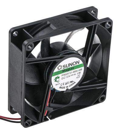 This is Axial Fan 80 x 80 x 25mm 102m³/h 4.1W 12 V dc (PF Series) manufactured by Sunon. The manufacturer part number is PF80251V1-000U-A99. The given dimensions of the product include 80 x 80 x 25mm. It also carries 341ma maximum current. It features a noise level of 46.5db. The product pf, is a highly preferred choice for users. It operates through dc. This has integrated with a vapo, a bearing with long-lasting features. In addition, the height is 80mm. Furthermore, the product is 80mm wide. The product comes in 25mm depth. Its power consumption is approximately 4.1w . It has a 102m³/h air flow rate. Features 12 v dc supply voltage. Its fan speed is about 4800rpm .