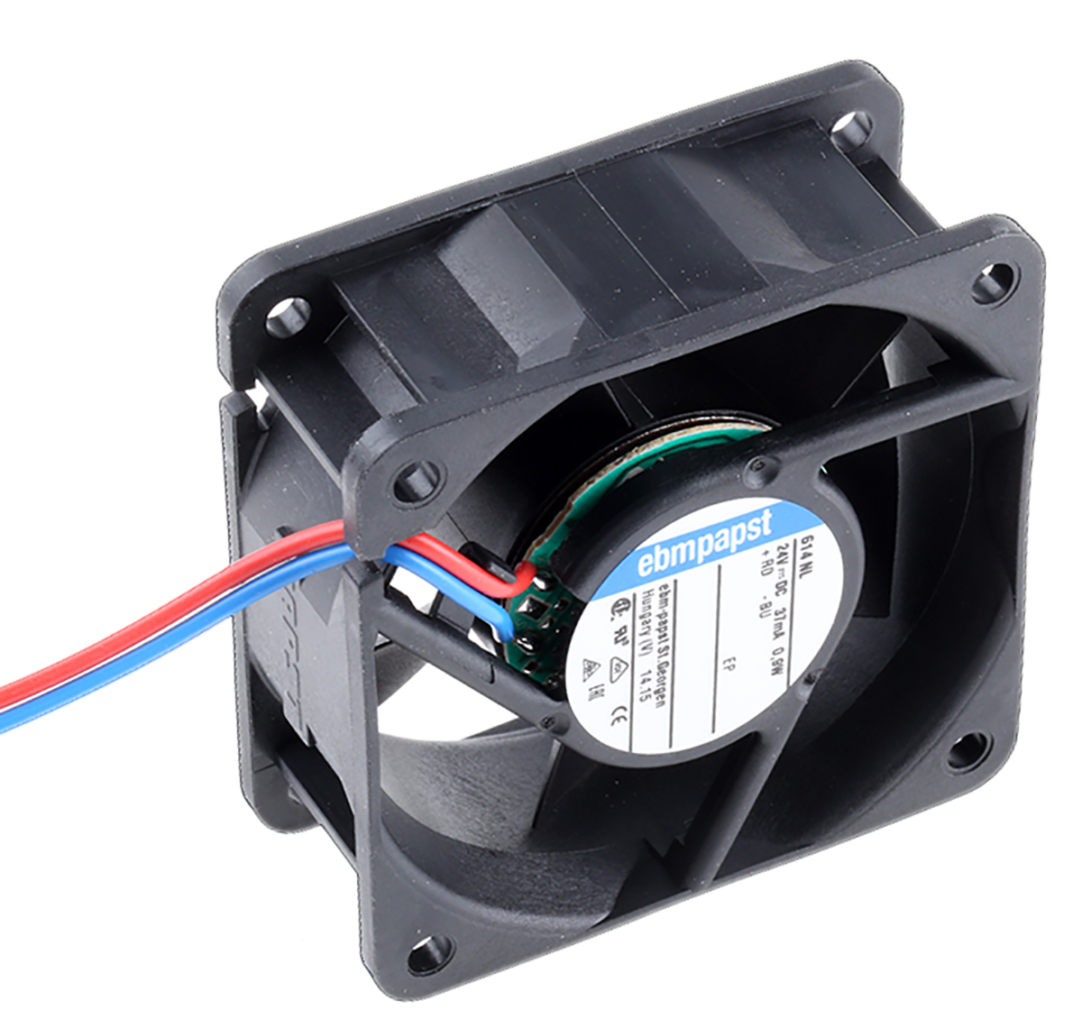 This is Axial Fan 60 x 60 x 25.4mm 21m³/h 900mW 24 V dc (600N Series) manufactured by ebm-papst. The manufacturer part number is 614NL. The given dimensions of the product include 60 x 60 x 25mm. It also carries 34ma maximum current. It features a noise level of 16db. It operates through dc. This has integrated with a ball, a bearing with long-lasting features. In addition, the height is 60mm. Furthermore, the product is 60mm wide. The product comes in 25.4mm depth. Its power consumption is approximately 800mw . It has a 21m³/h air flow rate. Features 24 v dc supply voltage. Its fan speed is about 2500rpm .