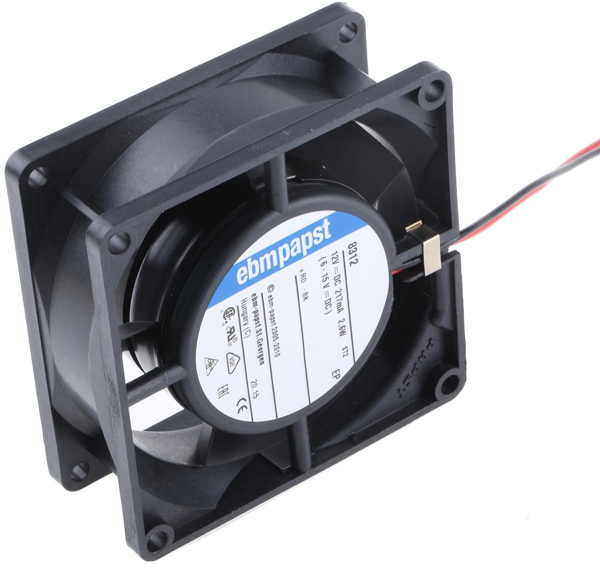 This is Axial Fan 80 x 80 x 32mm 54m³/h 2.6W 12 V dc (8300 Series) manufactured by ebm-papst. The manufacturer part number is 8312. The given dimensions of the product include 80 x 80 x 32mm. It features a noise level of 36db. It operates through dc. This has integrated with a ball, a bearing with long-lasting features. In addition, the height is 80mm. Furthermore, the product is 80mm wide. The product comes in 32mm depth. Its power consumption is approximately 2.6w . It has a 54m³/h air flow rate. Features 12 v dc supply voltage. Its fan speed is about 3300rpm .