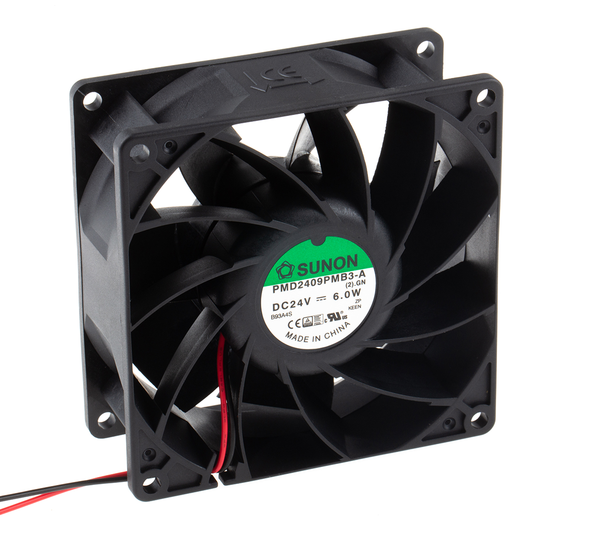 This is DC Axial Fan 92 x 92 x 38mm 156m³/h 6W 24 V dc (PMD Series) manufactured by Sunon. The manufacturer part number is PMD2409PMB3-A(2).GN. The given dimensions of the product include 92 x 92 x 38mm. It also carries 250ma maximum current. It features a noise level of 50.3db. It operates through dc. This has integrated with a ball, a bearing with long-lasting features. In addition, the height is 92mm. Furthermore, the product is 92mm wide. The product comes in 38mm depth. Its power consumption is approximately 6w . It has a 156m³/h air flow rate. Features 24 v dc supply voltage. Its fan speed is about 3800rpm .