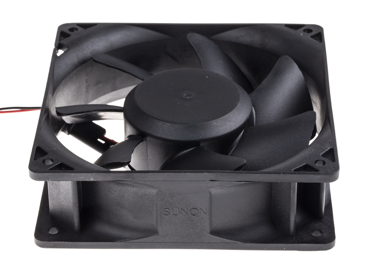 This is Axial Fan 120 x 38 x 120mm 289m³/h 13.7W 24 V dc (PMD Series) manufactured by Sunon. The manufacturer part number is PMD2412PMB2-A (2).GN. The given dimensions of the product include 120 x 120 x 38mm. It also carries 570ma maximum current. It features a noise level of 51db. It operates through dc. This has integrated with a ball, a bearing with long-lasting features. In addition, the height is 120mm. Furthermore, the product is 38mm wide. The product comes in 120mm depth. Its power consumption is approximately 13.7w . It has a 289m³/h air flow rate. Features 24 v dc supply voltage. Its fan speed is about 3800rpm . Its direction of curve is in forward .