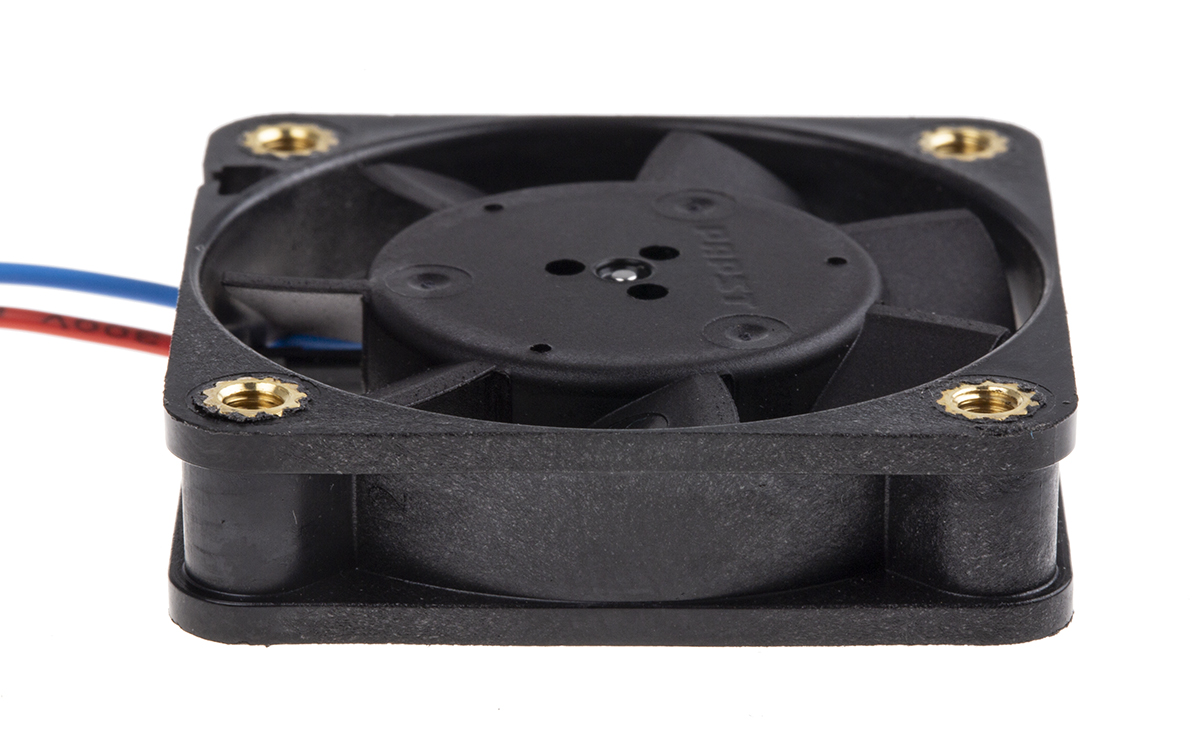 This is Axial Fan 40 x 40 x 10mm 9m³/h 800mW 12 V dc (400F Series) manufactured by ebm-papst. The manufacturer part number is 412FH-RS0. The given dimensions of the product include 40 x 40 x 10mm. It features a noise level of 26db. It operates through dc. This has integrated with a sleeve, a bearing with long-lasting features. In addition, the height is 40mm. Furthermore, the product is 40mm wide. The product comes in 10mm depth. Its power consumption is approximately 800mw . It has a 9m³/h air flow rate. Features 12 v dc supply voltage. Its fan speed is about 6000rpm .