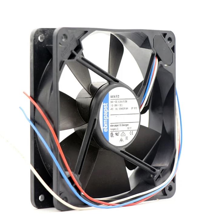 This is Axial Fan 119 x 119 x 25mm 170m³/h 5W 24 V dc (4400 Series) manufactured by ebm-papst. The manufacturer part number is 4414F. The given dimensions of the product include 119 x 119 x 25mm. It also carries 210ma maximum current. It is IP rated with ip20. It features a noise level of 43db. This has integrated with a ball, a bearing with long-lasting features. In addition, the height is 119mm. Furthermore, the product is 119mm wide. The product comes in 25mm depth. Its power consumption is approximately 5w . It has a 170m³/h air flow rate. Features 24 v dc supply voltage. Its fan speed is about 2900rpm . The product is designed with a lead wire termination. It operates through dc.