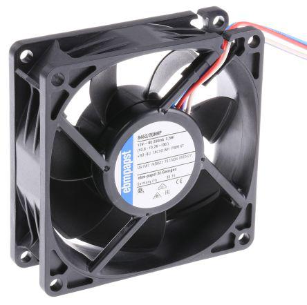 This is DC Axial Fan 80 x 80 x 25.4mm 83m³/h 3.5W 12 V dc manufactured by ebm-papst. The manufacturer part number is 8452/2GHHP. The given dimensions of the product include 80 x 80 x 25.4mm. However, the sensor output type is pwm, tachometer . It features a noise level of 42db. It operates through dc. This has integrated with a sleeve, a bearing with long-lasting features. In addition, the height is 25.4mm. Furthermore, the product is 80mm wide. The product comes in 80mm depth. Its power consumption is approximately 3.5w . It has a 83m³/h air flow rate. Features 12 v dc supply voltage. Its fan speed is about 4400rpm . Its direction of curve is in backward .