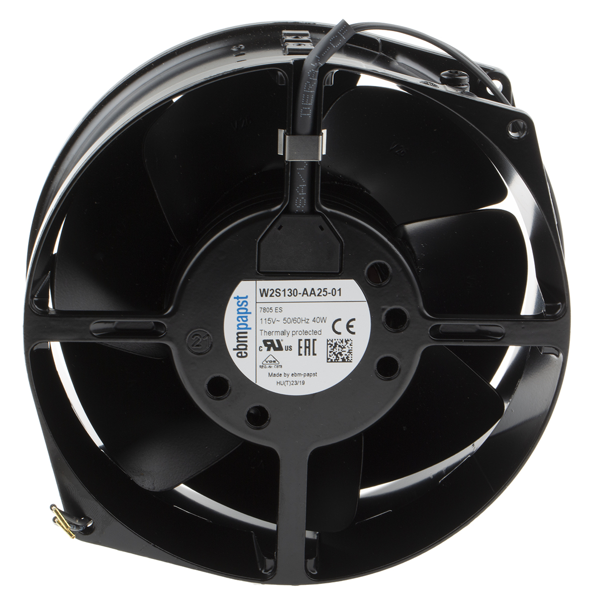 This is Axial Fan 150 x 55mm 380m³/h 38W 115 V ac (W2S130 Series) manufactured by ebm-papst. The manufacturer part number is W2S130-AA25-01. The given dimensions of the product include 150 x 55mm. It also carries 560ma maximum current. It operates through ac. This has integrated with a ball, a bearing with long-lasting features. Furthermore, the product is 55mm wide. Its power consumption is approximately 38w . It has a 320m³/h air flow rate. Features 115 v ac supply voltage. Its fan speed is about 2800rpm .