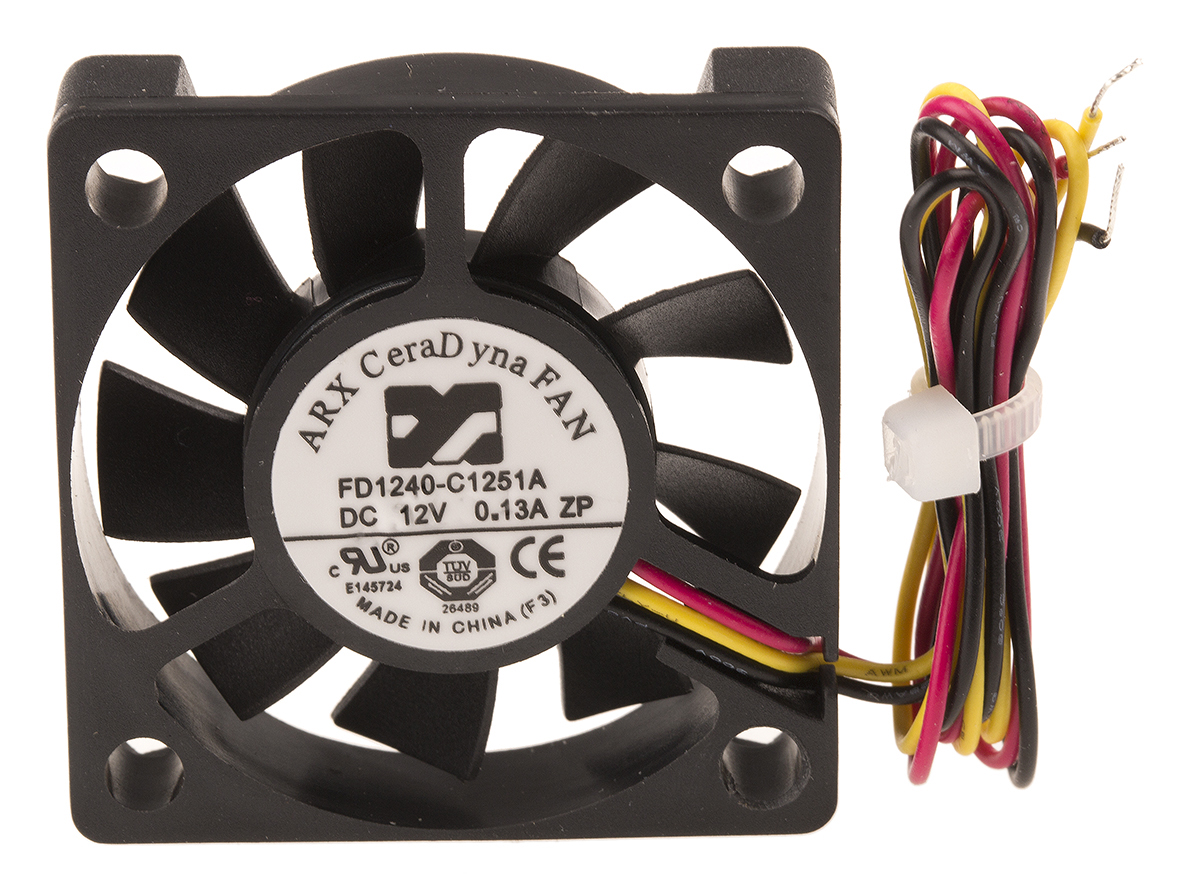 ARX DC Ceramic Bearing Fans ARX DC ceramic bearing fans are constructed using a toughened ceramic material to provide superior reduction characteristics in both wear and friction. Quiet long service life - will outlast ball bearing fans at a high speed Ceramic bearing type provides improved performance Resistant to heat and humidity This system does not use oil as a lubricant for its operation The polished surfaces of the ceramic give low friction and are self-polishing Note The lead lengths range from 245mm ± 10mm to 295mm ± 10mm. Red is +ve, black is -ve. The output wire is either white or yellow (if fitted). The O/P wire need only be connected if user wants to measure the speed of the fan (1 revolution gives 1 pulsed output signal generally). Approvals TUV Approvals TUV.