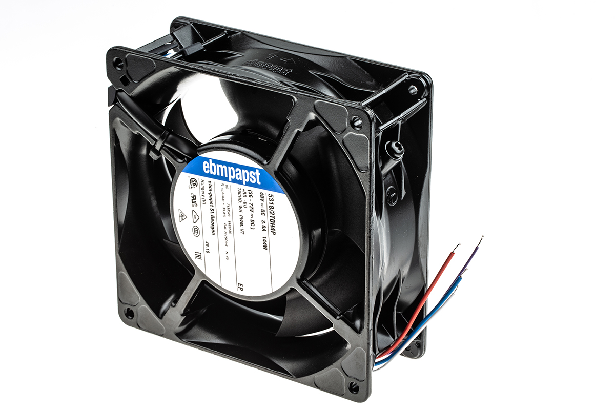 This is DC Axial Fan 139.6 x 139.6 x 50.8mm 670m³/h 149W 48 V dc (5300 Series) manufactured by ebm-papst. The manufacturer part number is 5318/2TDH4P. The given dimensions of the product include 140 x 140 x 51mm. It features a noise level of 79db. It operates through dc. This has integrated with a ball, a bearing with long-lasting features. In addition, the height is 139.6mm. Furthermore, the product is 139.6mm wide. The product comes in 50.8mm depth. Its power consumption is approximately 149w . It has a 670m³/h air flow rate. Features 48 v dc supply voltage. Its fan speed is about 9200rpm . These sensors are sort of pwm, tachometer.