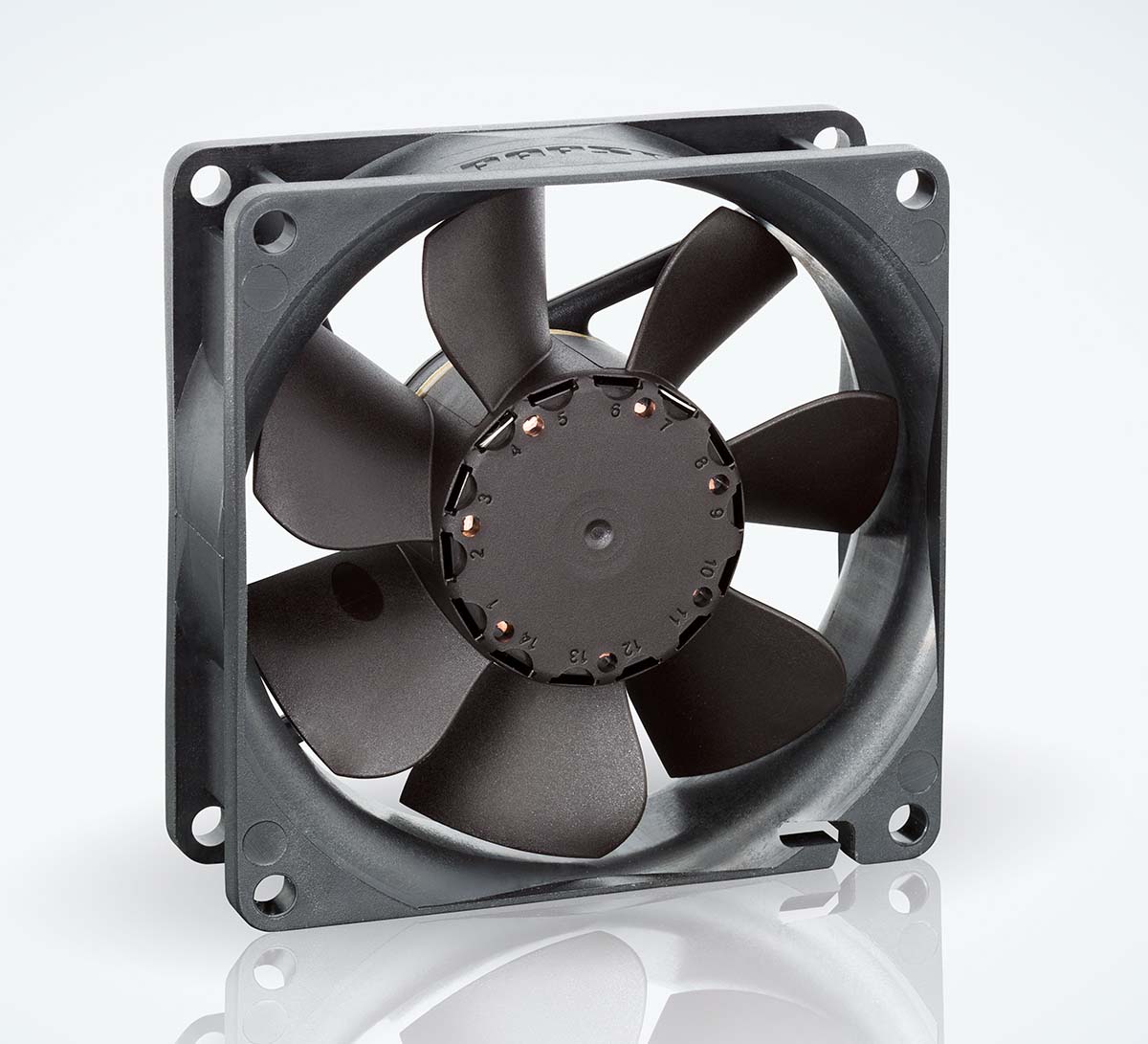 This is Axial Fan 80 x 80 x 25mm 69m³/h 2W 24 V dc (8400N Series) manufactured by ebm-papst. The manufacturer part number is 8414N. The given dimensions of the product include 80 x 80 x 25mm. It also carries 85ma maximum current. It is IP rated with ip20. It features a noise level of 32db. This has integrated with a ball, a bearing with long-lasting features. In addition, the height is 80mm. Furthermore, the product is 80mm wide. The product comes in 25mm depth. Its power consumption is approximately 2w . It has a 69m³/h air flow rate. Features 24 v dc supply voltage. Its fan speed is about 3100rpm . The product is designed with a lead wire termination. It operates through dc.