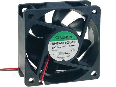 This is Axial Fan 60 x 60 x 25mm 23.5cfm 1.8W 24 V dc (EB Series) manufactured by Sunon. The manufacturer part number is EB60252S1-000U-999. The given dimensions of the product include 60 x 60 x 25mm. It also carries 75ma maximum current. It features a noise level of 33.5db. It operates through dc. This has integrated with a sleeve, a bearing with long-lasting features. In addition, the height is 60mm. Furthermore, the product is 60mm wide. The product comes in 25mm depth. Its power consumption is approximately 1.8w . It has a 39.9m³/h air flow rate. Features 24 v dc supply voltage. Its fan speed is about 4500rpm . Its direction of curve is in forward .