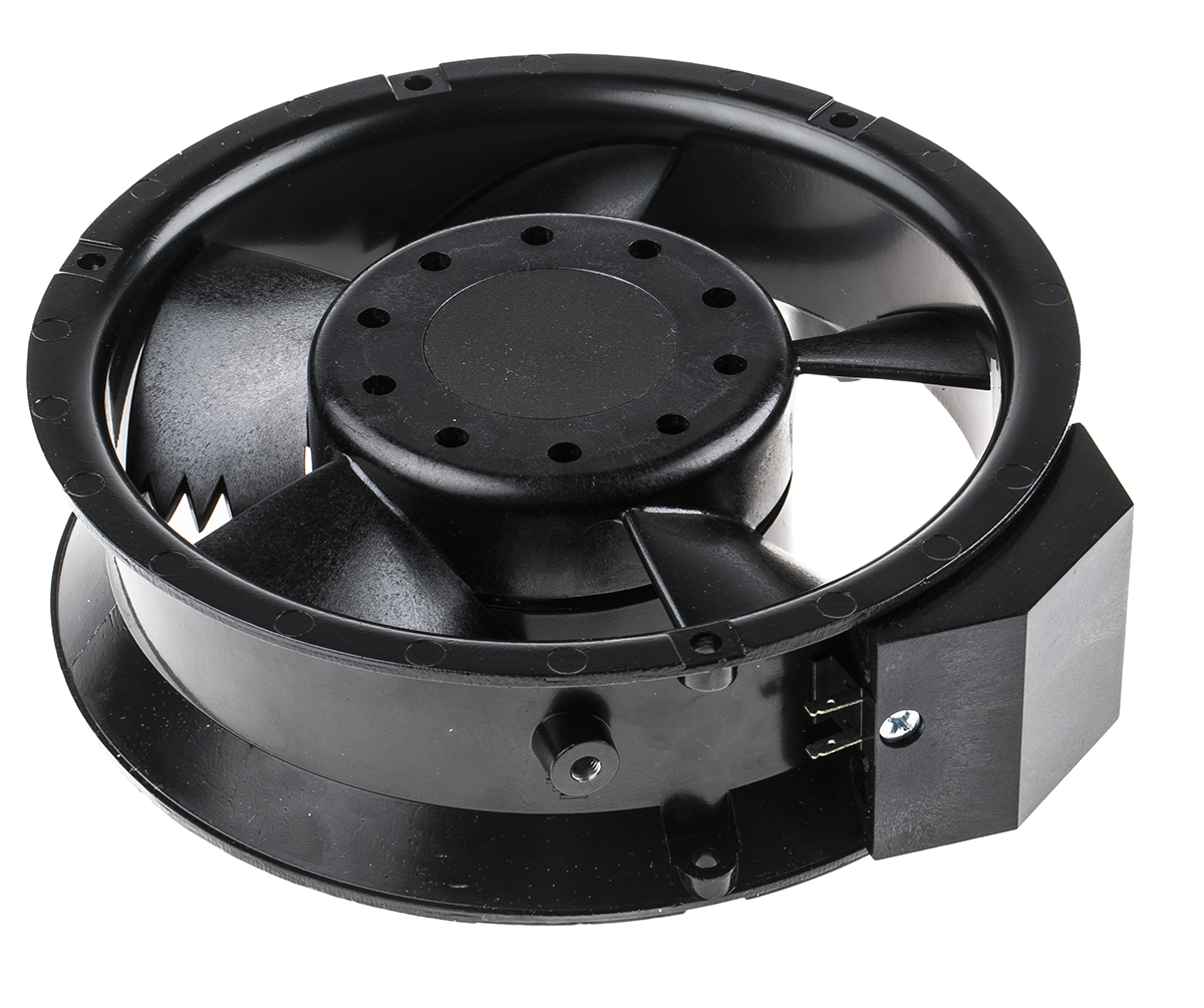 This is AC Axial Fan 171.4 (Dia.) x 50mm 400m³/h 31W 115 V ac (Patriot Series) manufactured by COMAIR ROTRON. The manufacturer part number is PT2B3 19028254A. The given dimensions of the product include 171.4 x 50mm. It also carries 260ma maximum current. It features a noise level of 54db. It operates through ac. This has integrated with a ball, a bearing with long-lasting features. The product comes in 50mm depth. Its power consumption is approximately 31w . It has a 400m³/h air flow rate. Features 115 v ac supply voltage. Its fan speed is about 3400rpm .