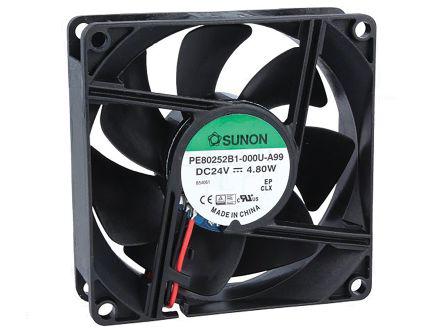 This is Axial Fan 80 x 80 x 25mm 60cfm 4.8W 24 V dc (PE Series) manufactured by Sunon. The manufacturer part number is PE80252B1-000U-A99.