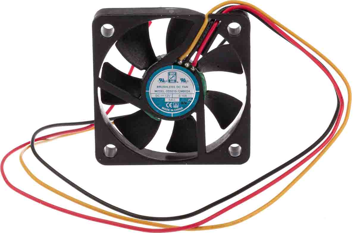 This is Axial Fan 50 x 50 x 10.5mm 9cfm 1.2W 12 V dc manufactured by RS Pro. The manufacturer part number is 144-2051. Its direction of curve is in forward . The given dimensions of the product include 50 x 50 x 10mm. It also carries 90ma maximum current. It is IP rated with ip55. It features a noise level of 25db. This has integrated with a ball, a bearing with long-lasting features. In addition, the height is 50mm. Furthermore, the product is 50mm wide. The product comes in 10.5mm depth. Its power consumption is approximately 1.2w . It has a 16.9m³/h air flow rate. Features 12 v dc supply voltage. The product is designed with a lead wire termination. Its fan speed is about 4600rpm . It operates through dc. These sensors are sort of alarm.