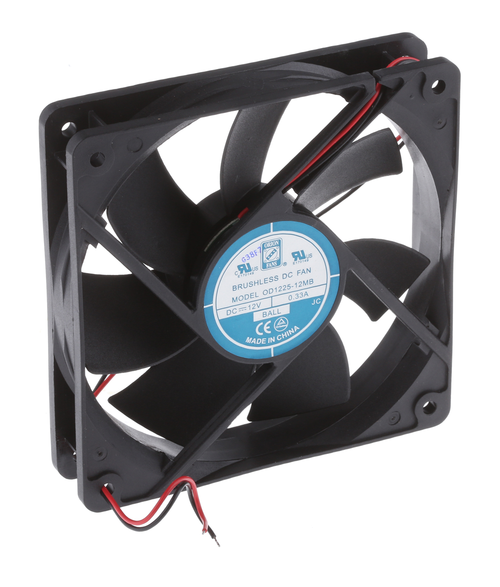This is Axial Fan 120 x 120 x 25mm 141.1m³/h 4W 12 V dc manufactured by RS Pro. The manufacturer part number is 541-5104. The given dimensions of the product include 120 x 120 x 25mm. It also carries 330ma maximum current. It features a noise level of 38db. It operates through dc. This has integrated with a ball, a bearing with long-lasting features. In addition, the height is 120mm. Furthermore, the product is 120mm wide. The product comes in 25mm depth. Its power consumption is approximately 4w . It has a 141m³/h air flow rate. Features 12 v dc supply voltage. The product is designed with a lead wire termination. Its fan speed is about 2050rpm . Its direction of curve is in forward .
