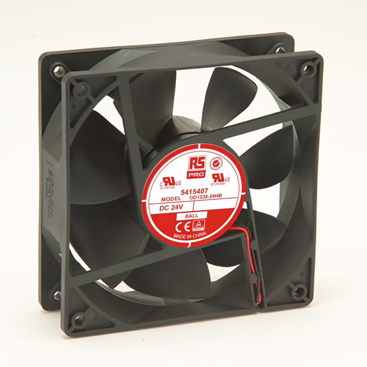 This is Axial Fan 120 x 120 x 38.5mm 178m³/h 7W 24 V dc manufactured by RS Pro. The manufacturer part number is 541-5407. The given dimensions of the product include 120 x 120 x 38mm. It also carries 320ma maximum current. It features a noise level of 43db. It operates through dc. This has integrated with a ball, a bearing with long-lasting features. In addition, the height is 120mm. Furthermore, the product is 120mm wide. The product comes in 38.5mm depth. Its power consumption is approximately 7w . It has a 178.4m³/h air flow rate. Features 24 v dc supply voltage. The product is designed with a lead wire termination. Its fan speed is about 2800rpm . Its direction of curve is in forward .