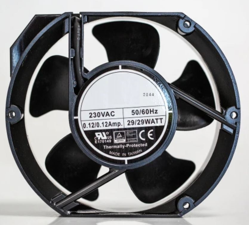 This is Axial Fan 172 x 51mm 399.5m³/h 35W 230 V ac manufactured by RS Pro. The manufacturer part number is 619-6898. The given dimensions of the product include 172 x 150mm. It also carries 150ma maximum current. It features a noise level of 52db. It operates through ac. This has integrated with a ball, a bearing with long-lasting features. In addition, the height is 172mm. Furthermore, the product is 150mm wide. The product comes in 51mm depth. Its power consumption is approximately 29w . It has a 399.3m³/h air flow rate. Features 230 v ac supply voltage. The product is designed with a terminal termination. Its fan speed is about 3200rpm . Its direction of curve is in forward .