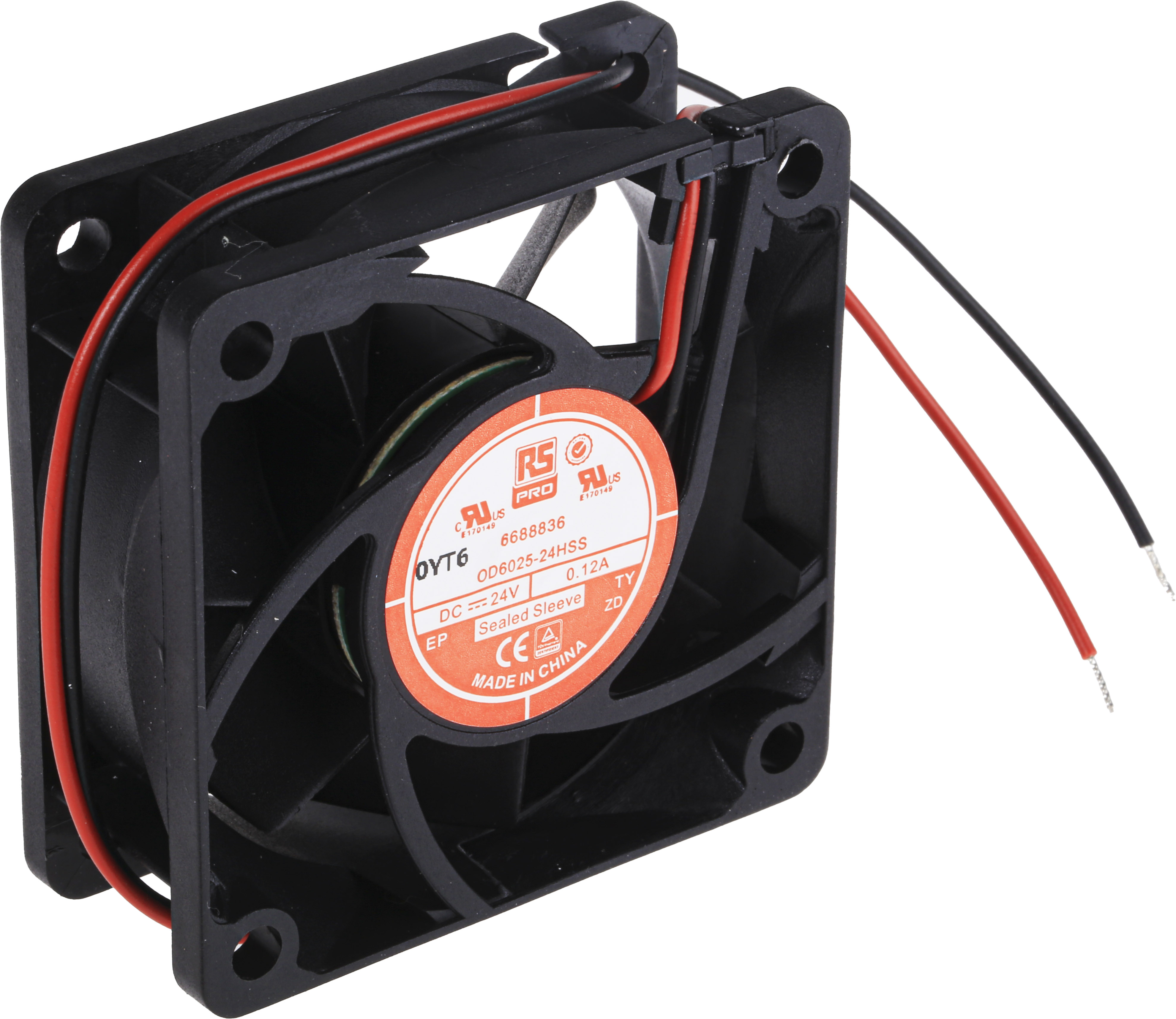 This is Axial Fan 60 x 60 x 25mm 42.5m³/h 3.6W 24 V dc manufactured by RS Pro. The manufacturer part number is 668-8836. The given dimensions of the product include 60 x 60 x 25mm. It also carries 120ma maximum current. It features a noise level of 33db. It operates through dc. This has integrated with a sleeve, a bearing with long-lasting features. In addition, the height is 60mm. Furthermore, the product is 60mm wide. The product comes in 25mm depth. Its power consumption is approximately 3.6w . It has a 39.1m³/h air flow rate. Features 24 v dc supply voltage. The product is designed with a lead wire termination. Its fan speed is about 4500rpm . Its direction of curve is in backward .