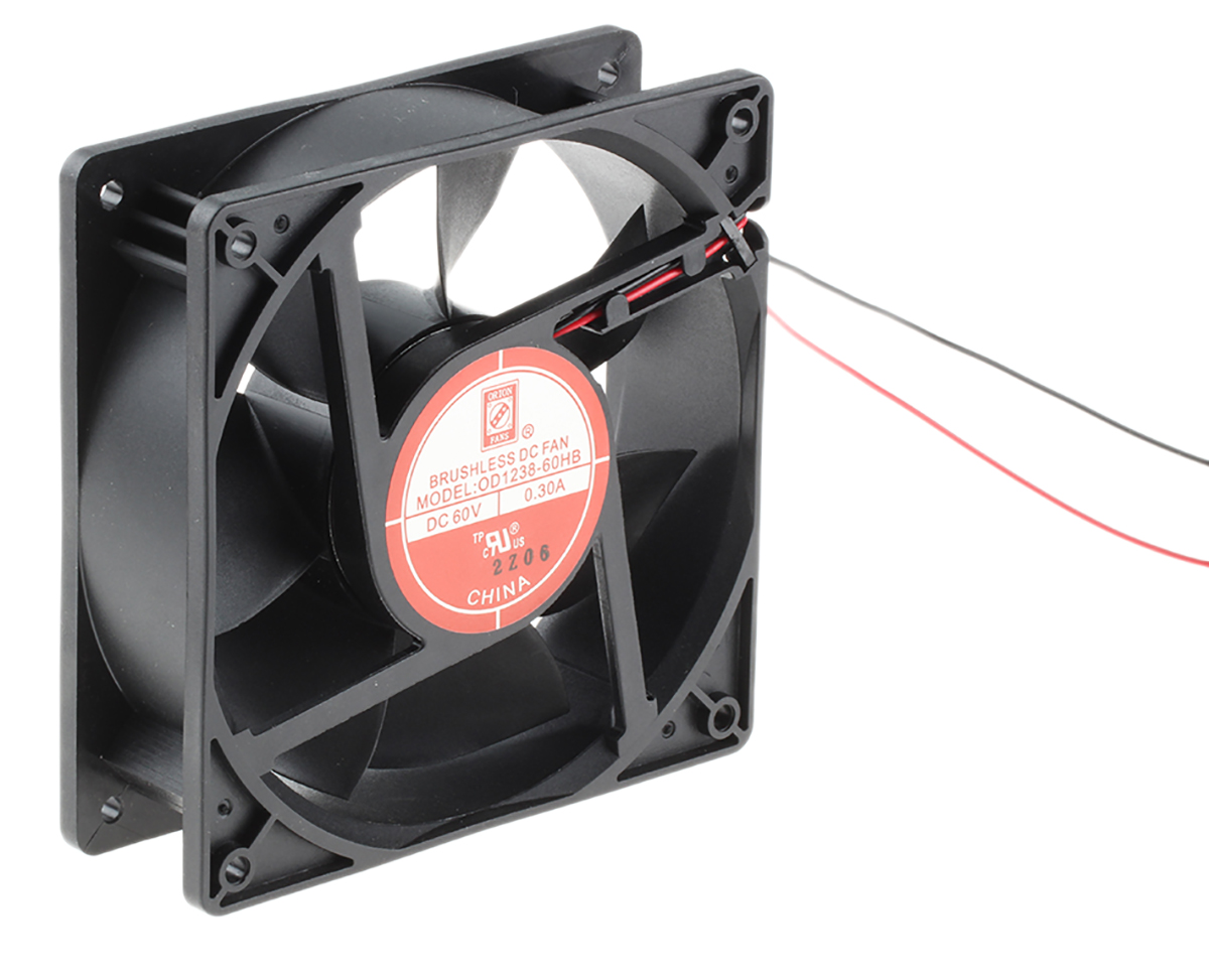 This is Axial Fan 120 x 120 x 38mm 196m³/h 14.4W 60 V dc manufactured by RS Pro. The manufacturer part number is 787-4000. The given dimensions of the product include 120 x 120 x 38mm. It also carries 300ma maximum current. It features a noise level of 41db. It operates through dc. This has integrated with a ball, a bearing with long-lasting features. In addition, the height is 120mm. Furthermore, the product is 120mm wide. The product comes in 38mm depth. Its power consumption is approximately 14.4w . It has a 195.4m³/h air flow rate. Features 60 v dc supply voltage. The product is designed with a lead wire termination. Its fan speed is about 2600rpm . Its direction of curve is in forward .
