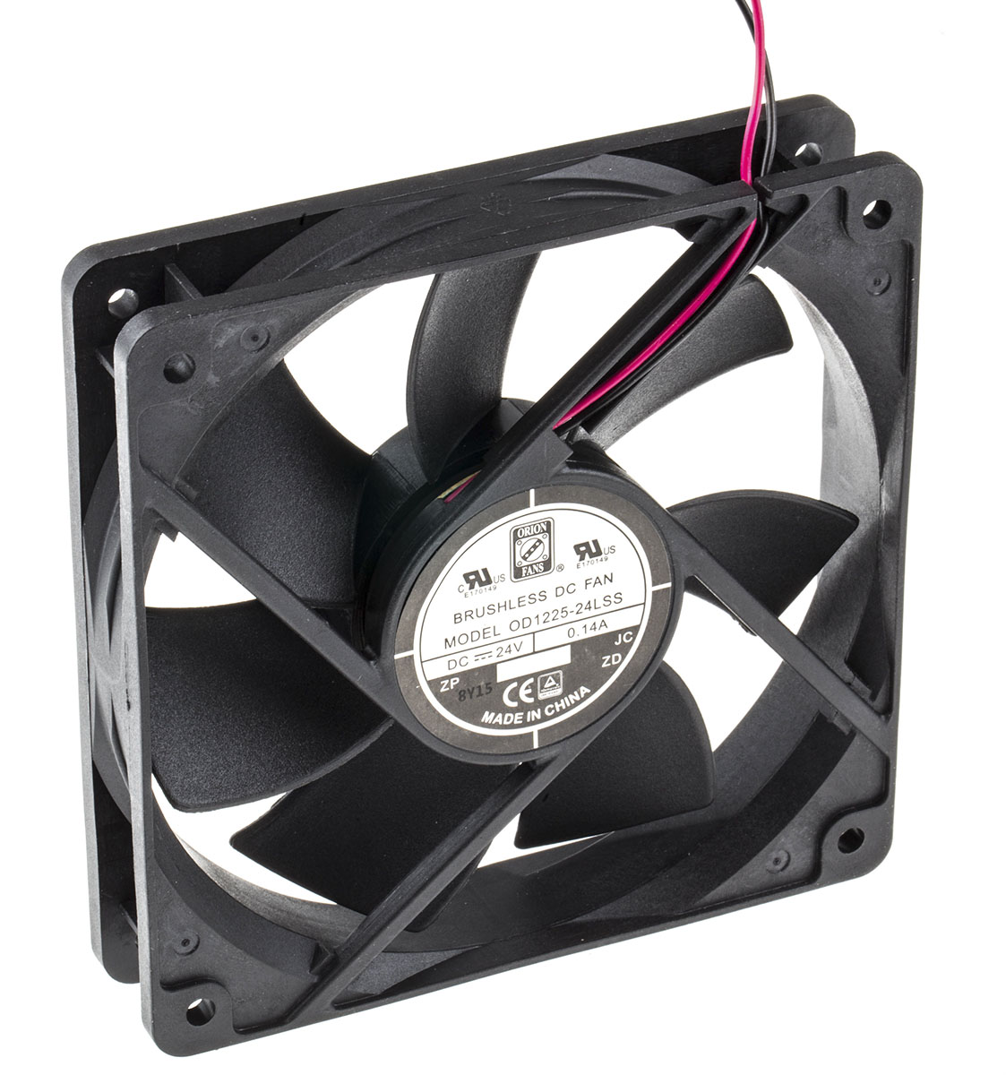 This is Axial Fan 120 x 120 x 25mm 122m³/h 3W 24 V dc manufactured by RS Pro. The manufacturer part number is 787-4019. The given dimensions of the product include 120 x 120 x 25mm. It also carries 140ma maximum current. It features a noise level of 34db. It operates through dc. This has integrated with a ball, a bearing with long-lasting features. In addition, the height is 120mm. Furthermore, the product is 120mm wide. The product comes in 25mm depth. Its power consumption is approximately 3w . It has a 121m³/h air flow rate. Features 24 v dc supply voltage. The product is designed with a lead wire termination. Its fan speed is about 1800rpm . Its direction of curve is in forward .