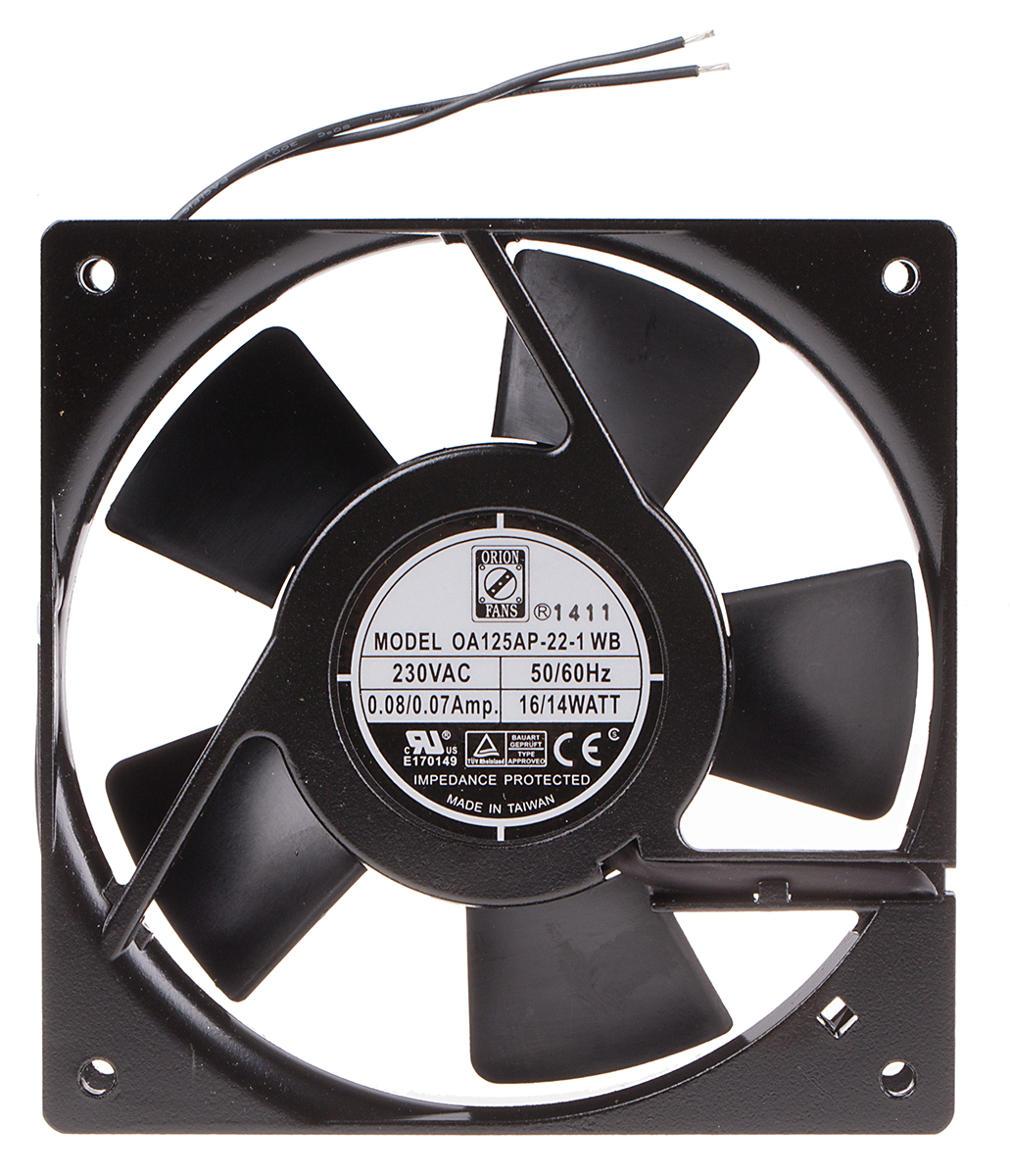 This is Axial Fan 119.5 x 119.5 x 26.2mm 138m³/h 13W 230 V ac manufactured by RS Pro. The manufacturer part number is 789-7886. The given dimensions of the product include 120 x 120 x 25mm. It also carries 70ma maximum current. It features a noise level of 42db. It operates through ac. This has integrated with a ball, a bearing with long-lasting features. In addition, the height is 119.5mm. Furthermore, the product is 119.5mm wide. The product comes in 25mm depth. Its power consumption is approximately 14w . It has a 127.4m³/h air flow rate. Features 230 v ac supply voltage. The product is designed with a lead wire termination. Its fan speed is about 2900rpm . Its direction of curve is in forward .