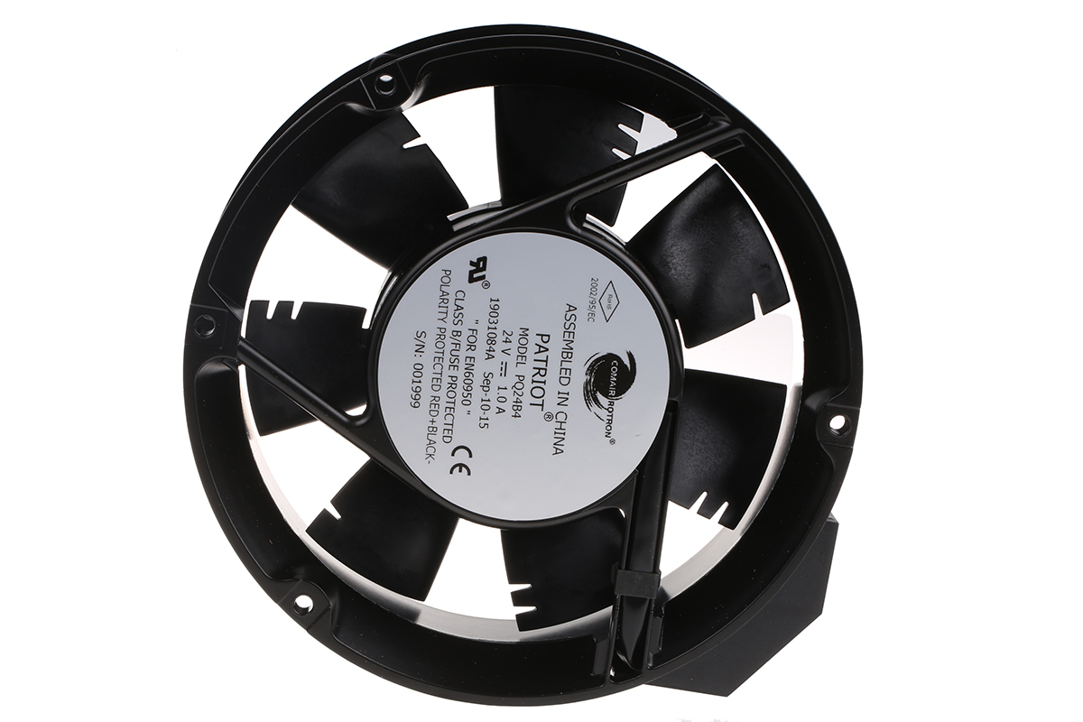 This is Axial Fan 171.4 x 50mm 399m³/h 24W 24 V dc (Patriot Series) manufactured by COMAIR ROTRON. The manufacturer part number is PQ24B4 19031084A. The given dimensions of the product include 171.4 x 50mm. It also carries 1a maximum current. It features a noise level of 51.2db. It operates through dc. This has integrated with a ball, a bearing with long-lasting features. The product comes in 50mm depth. Its power consumption is approximately 24w . It has a 399m³/h air flow rate. Features 24 v dc supply voltage. Its fan speed is about 3425rpm .