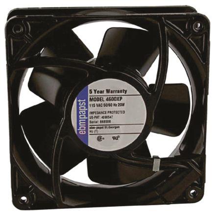This is 4600 Series Axial Fan 119 x 119 x 38mm 180m³/h 18W 115 V ac manufactured by ebm-papst. The manufacturer part number is 4600XP. The given dimensions of the product include 119 x 119 x 38mm. It features a noise level of 45db. It operates through ac. This has integrated with a sintec, a bearing with long-lasting features. In addition, the height is 119mm. Furthermore, the product is 119mm wide. The product comes in 38mm depth. Its power consumption is approximately 18w . It has a 180m³/h air flow rate. Features 115 v ac supply voltage. Its fan speed is about 3100rpm . Its direction of curve is in forward .