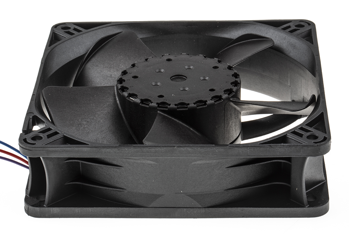 This is Axial Fan 119 x 119 x 32mm 190m³/h 5W 24 V dc (4300 Series) manufactured by ebm-papst. The manufacturer part number is 4314N/17NT. The given dimensions of the product include 119 x 119 x 32mm. It features a noise level of 45db. It operates through dc. This has integrated with a ball, a bearing with long-lasting features. In addition, the height is 119mm. Furthermore, the product is 119mm wide. The product comes in 32mm depth. Its power consumption is approximately 4w . It has a 187m³/h air flow rate. Features 24 v dc supply voltage. Its fan speed is about 2700rpm . The product is designed with a lead wire termination. These sensors are sort of temperature.