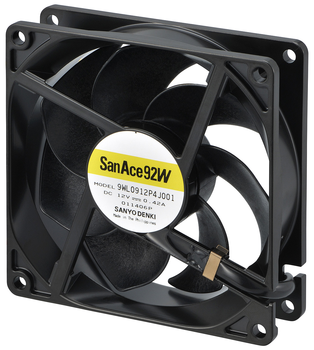 This is San Ace 9WL Series Axial Fan 92 x 92 x 25mm 132m³/h 5.04W 24 V dc IP68 manufactured by Sanyo Denki. The manufacturer part number is 9WL0924P4J001. The given dimensions of the product include 92 x 92 x 25mm. It also carries 210ma maximum current. It is IP rated with ip68. It features a noise level of 44db. This has integrated with a ball, a bearing with long-lasting features. In addition, the height is 92mm. Furthermore, the product is 92mm wide. The product comes in 25.2mm depth. Its power consumption is approximately 5.04w . It has a 132m³/h air flow rate. Features 24 v dc supply voltage. The product is designed with a lead wire termination. Its fan speed is about 5000rpm . It operates through dc. These sensors are sort of pwm, tachometer.