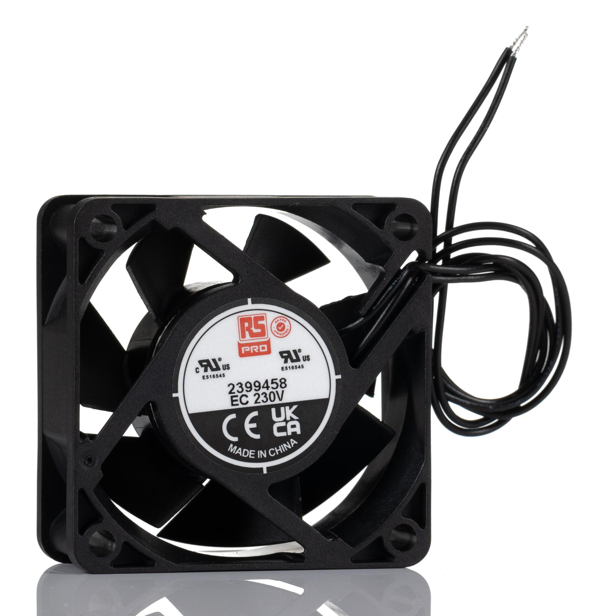 This is Axial Fan 230 V ac AC Operation 28.2cfm 4.2W 20mA Max 60 x 60 x 25mm manufactured by RS PRO. The manufacturer part number is 239-9458. The given dimensions of the product include 60 x 60 x 25mm. It also carries 20ma maximum current. It features a noise level of 32.5db(a). It operates through ac. This has integrated with a sleeve, a bearing with long-lasting features. In addition, the height is 60mm. Furthermore, the product is 60mm wide. The product comes in 25mm depth. Its power consumption is approximately 4.2w . It has a 28.2cfm air flow rate. Features 230 v ac supply voltage. Its fan speed is about 4200rpm .