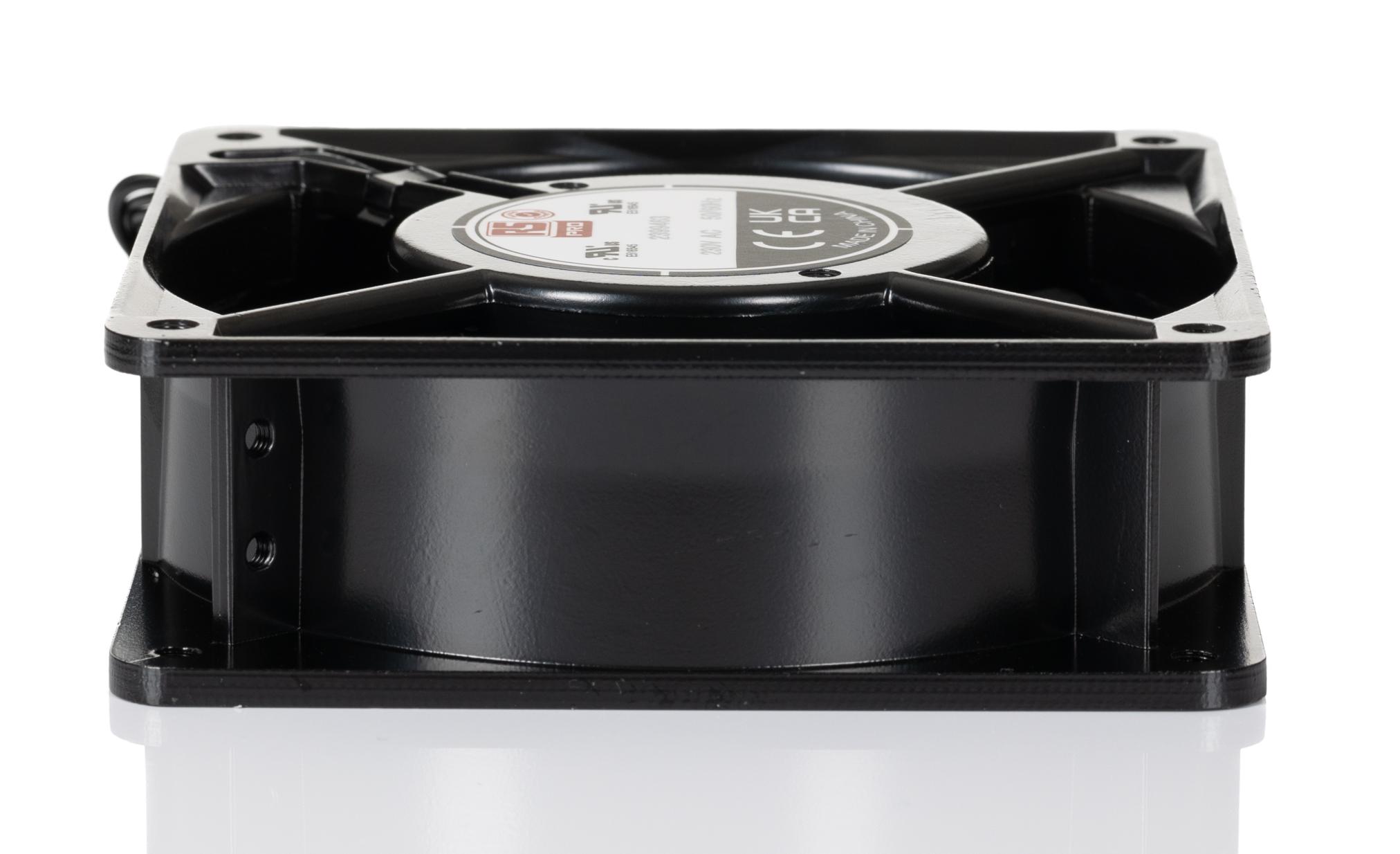 This is Axial Fan 230 V ac AC Operation 185.9cfm 18W 65mA Max 120 x 120 x 38mm manufactured by RS PRO. The manufacturer part number is 239-9463. The given dimensions of the product include 120 x 120 x 38mm. It also carries 65ma maximum current. It features a noise level of 53.2db(a). It operates through ac. This has integrated with a ball, a bearing with long-lasting features. In addition, the height is 120mm. Furthermore, the product is 120mm wide. The product comes in 38mm depth. Its power consumption is approximately 18w . It has a 185.9cfm air flow rate. Features 230 v ac supply voltage. Its fan speed is about 2900rpm .