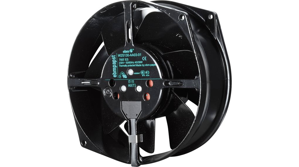This is Axial Fan 230 V ac ac Operation 325m³/h 45W 150 x 150 x 55mm manufactured by ebm-papst. The manufacturer part number is 7856ES / W2S130-AA03-97. The given dimensions of the product include 150 x 150 x 55mm. It operates through ac. In addition, the height is 150mm. Furthermore, the product is 150mm wide. The product comes in 55mm depth. Its power consumption is approximately 45w . It has a 325m³/h air flow rate. Features 230 v ac supply voltage.