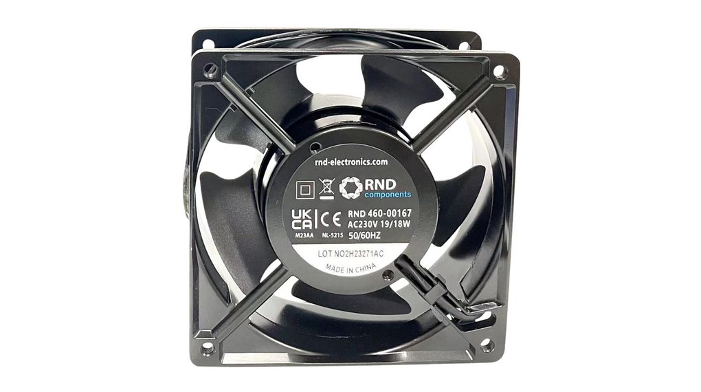 This is Axial Fan 230 V ac Operation 161.4m³/h 18 → 19W 120x120x38mm manufactured by RND. The manufacturer part number is RND 460-00167. The given dimensions of the product include 120x120x38mm. It operates through ac. In addition, the height is 120mm. Furthermore, the product is 120mm wide. The product comes in 38mm depth. Its power consumption is approximately 18 → 19w . It has a 161.4m³/h air flow rate. Features 230 v supply voltage.