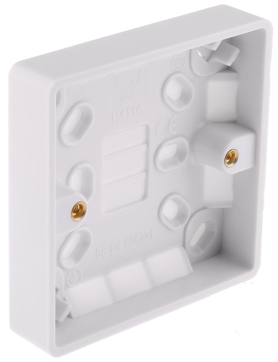 This is RS White White Matt Urea Formaldehyde Back Box BS Standard IP20 SURFACE Mount 1 Gangs 86.6 x 86.6 x 16mm manufactured by RS Pro. The manufacturer part number is 775-8103. It is tailored with a/an white colour family . The given dimensions of the product include 86.6 x 86.6 x 16mm. It comprises 1 gangs. It is IP rated with ip20. The product rs white, is a highly preferred choice for users. It has a decent white colour. Its accurate length is 86.6mm. In addition, the height is 86.6mm. Furthermore, the product is 86.6mm wide. The product comes in 16mm depth. It has a/an white colour shade . It includes an earth terminal no . It has a/an ip20 enclosure rating . It has a bs standard fixing .
