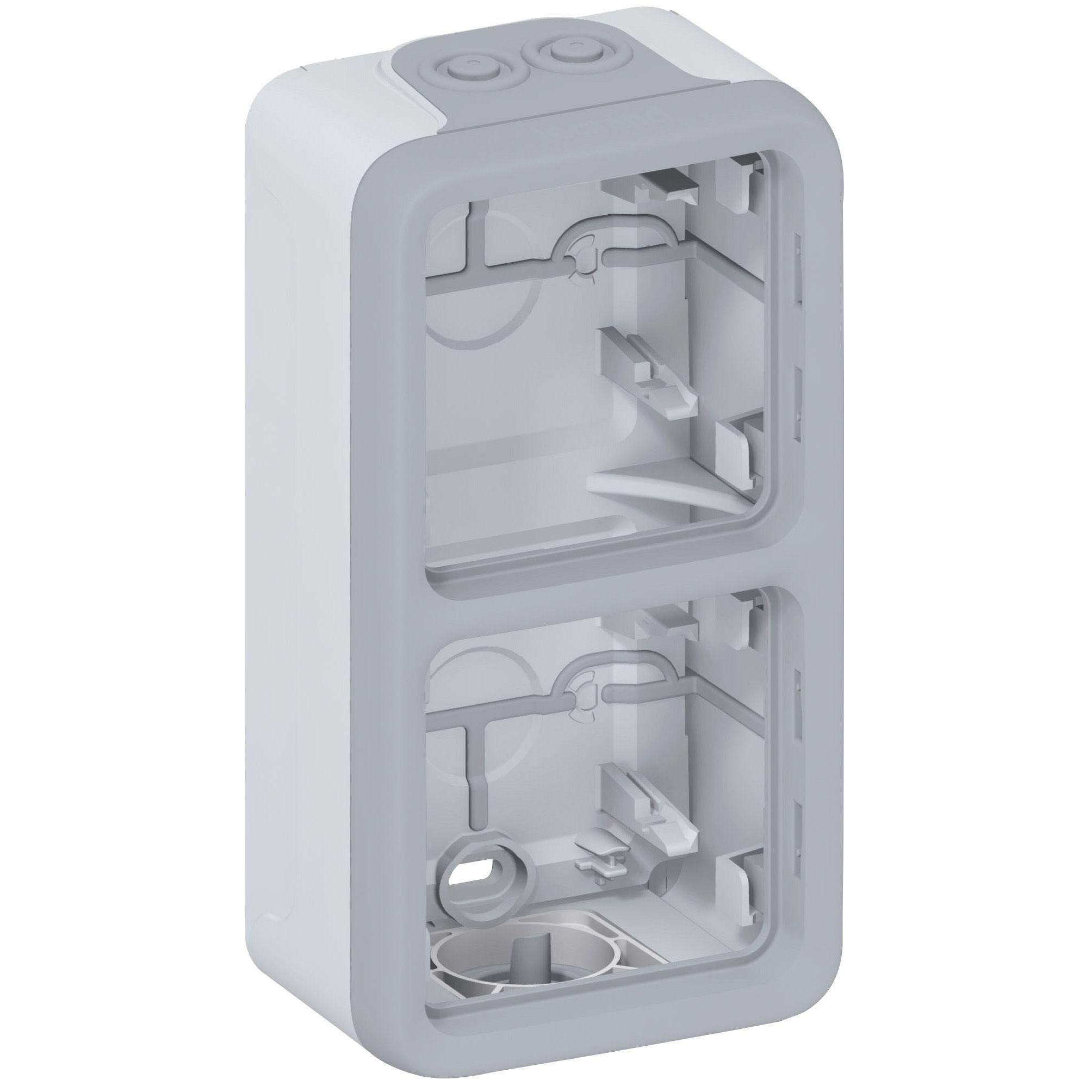 This is Grey Thermoplastic Back Boxes IP55 2 Gangs manufactured by Legrand. The manufacturer part number is 069954. It has a decent grey colour. The product is made from highly stable and reliable thermoplastic. It comprises 2 gangs. It is IP rated with ip55.
