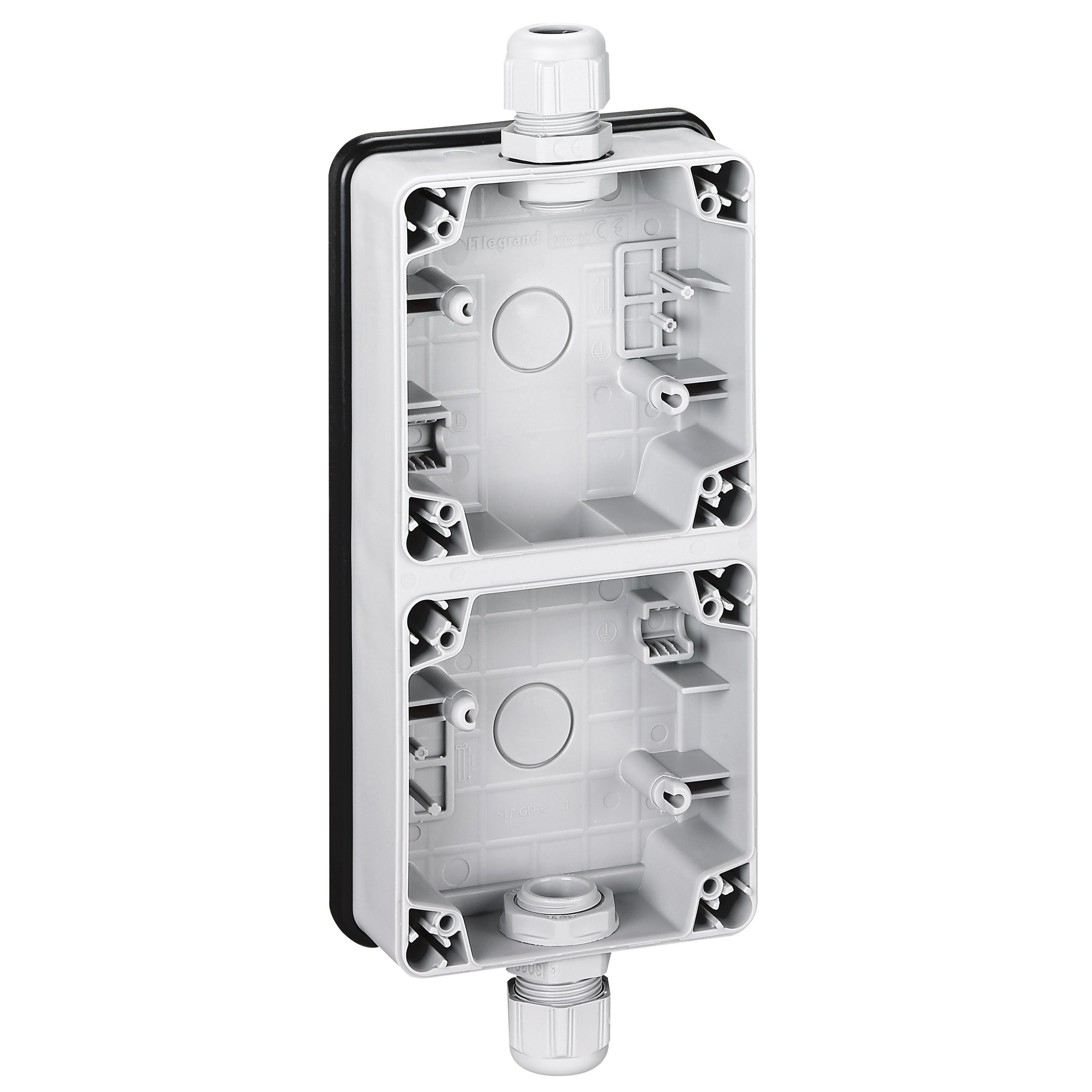 This is Grey Thermoplastic Back Boxes IP55 2 Gangs manufactured by Legrand. The manufacturer part number is 090492. It has a decent grey colour. The product is made from highly stable and reliable thermoplastic. It comprises 2 gangs. It is IP rated with ip55.