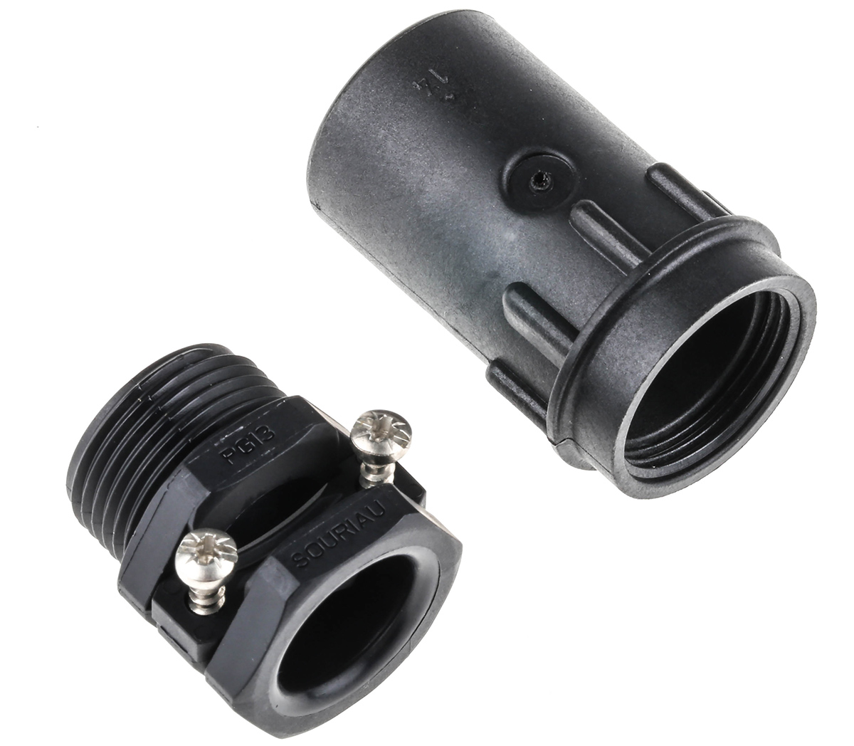 This is manufactured by Souriau-Sunbank by Eaton. The manufacturer part number is UTG14PG. Its accurate length is 62mm. It is assigned with possible HTSUS value of 8538.90.8180. The product is rohs3 compliant. It has a typical thread size of pg13.5. The exterior diameter of the product is 1.062" (26.97mm). It comes in backshell, cable clamp configuration. Cable opening features include 0.276" ~ 0.728" (7.00mm ~ 18.50mm). The product is made from highly stable and reliable thermoplastic. In addition, it is reach unaffected. The product is also supplied with 7 pcs - 1 backshell, 1 cable clamp, 1 cable gland, 2 screws, 2 washers. It is shipped in bag package . The insert's size is 14. Its typical moisture sensitivity level is not applicable. It has a long 34 weeks standard lead time. It is IP rated with ip65 - dust tight, water resistant. The splendid features of the product include cable gland, clamp screws, washers. It has a classic black colour. The product trim trio®, is a highly preferred choice for users. It features a cable exit value of 180°. The product is suitable for use with trim trio® utg and utp connectors. Moreover, it corresponds to utg14, a base product number of the product. The product is designated with the ear99 code number.