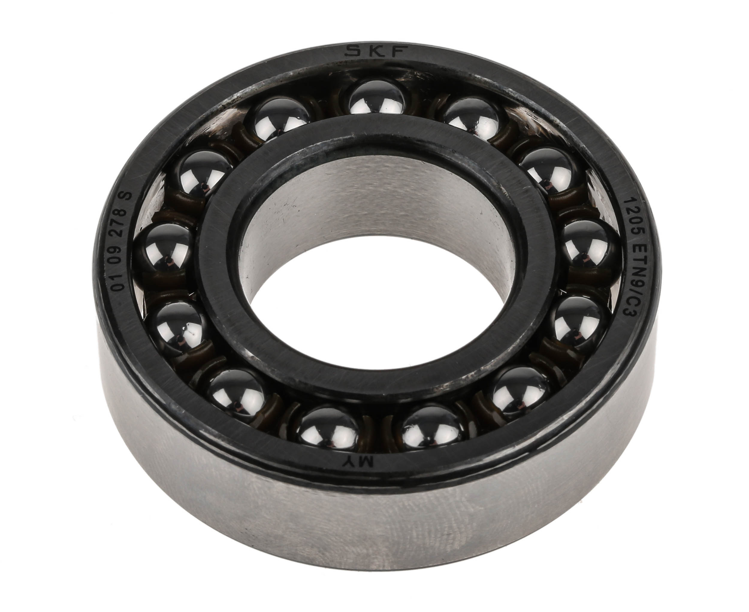 This is Self Aligning Ball Bearing - 25mm I.D 52mm O.D manufactured by SKF. The manufacturer part number is 1205 ETN9/C3. Whereas the race has a width of 15mm. The product has 52mm external diameter. It has 4kn static load rating. It comes in 2 of rows. Moreover, its inside diameter is 25mm. The product is made from highly stable and reliable steel. The self aligning ball bearing ball bearings last for a long time. The integrated bore is a type of parallel. The cage is designed from highly rugged non-metallic material. It has 14.3kn dynamic load rating. Its ball is made up of [Plier Type] material .