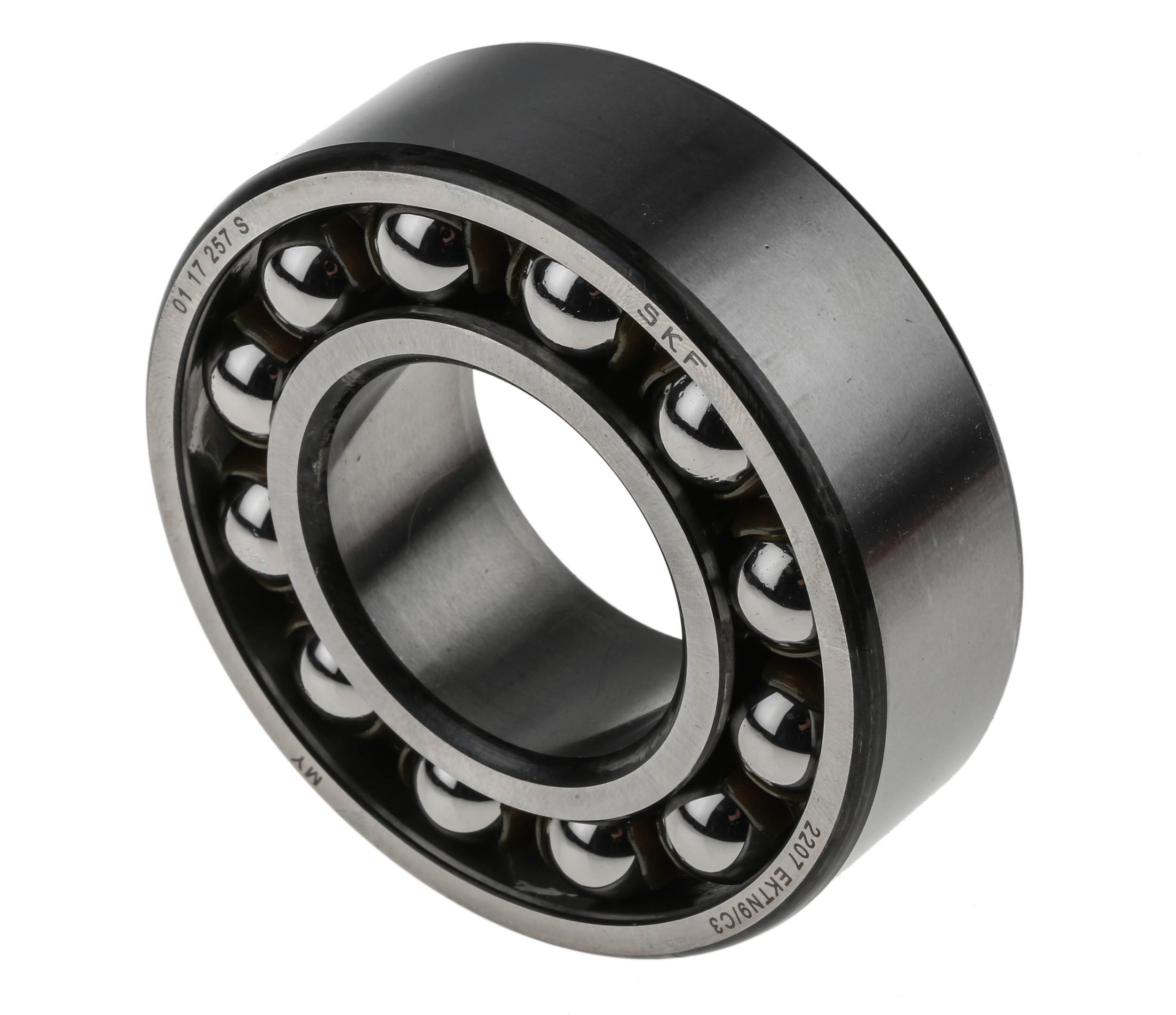 This is Self Aligning Ball Bearing - 35mm I.D 72mm O.D manufactured by SKF. The manufacturer part number is 2207 EKTN9/C3. Moreover, it has about 6300rpm speed limiting . Whereas the race has a width of 23mm. It has open end and is easy to use. It comes in 2 of rows. The product self-aligning ball bearings, is a highly preferred choice for users. Moreover, its inside diameter is 35 mm. It has 8.8kn static load rating. This has integrated with a self-aligning, a bearing with long-lasting features. The integrated bore is a type of tapered. The cage is designed from highly rugged non-metallic material. The product has 72 mm external diameter. It has 30.2kn dynamic load rating. ball bearing is a versatile product designed to provide user-defined applications. Its ball is made up of [Plier Type] material .