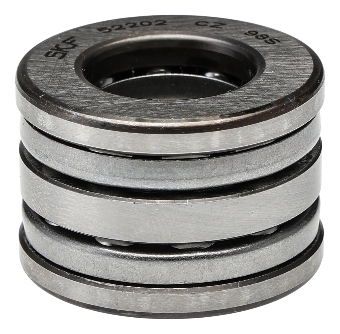 This is Thrust Ball Bearing - 10mm I.D 32mm O.D manufactured by SKF. The manufacturer part number is 52202. Moreover, it has about 7500rpm speed limiting . Whereas the race has a width of 22mm. The cage is designed from highly rugged sheet metal material. It has open end and is easy to use. It has 25kn static load rating. It comes in 2 of rows. Moreover, its inside diameter is 10 mm. It has 15.9kn dynamic load rating. This has integrated with a thrust ball, a bearing with long-lasting features. The integrated bore is a type of parallel. The product has 32 mm external diameter. ball bearing is a versatile product designed to provide user-defined applications. Its ball is made up of [Plier Type] material .
