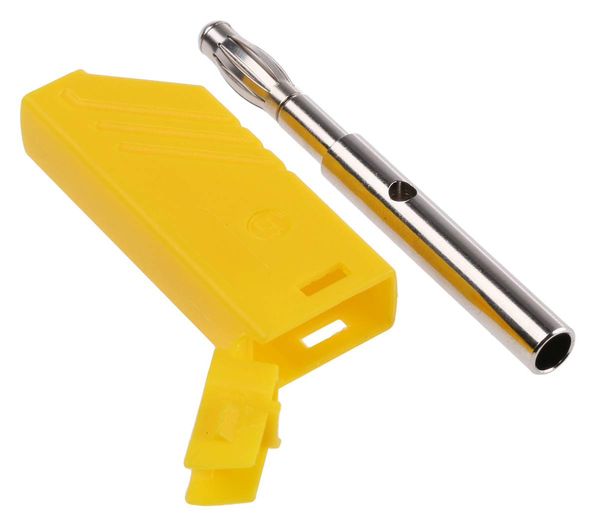 This is Yellow 4mm Banana Plug Nickel Plated 60V dc 24A manufactured by Hirschmann Test & Measurement. The manufacturer part number is 934100103. The product has a current rating of 24a. Moreover, the product has a nominal 60v dc voltage rating. In addition, male is the available "Gender" of the product. It has a decent yellow colour. Its accurate length is 58.5mm. It contains a spring contact . The high-quality nickel is used as contact plating material. It allows screw termination method. It has a robust polyamide insulation material. It comes in banana plug configuration. The connector has 4 mm size. The product is made from sturdy beryllium copper materials.