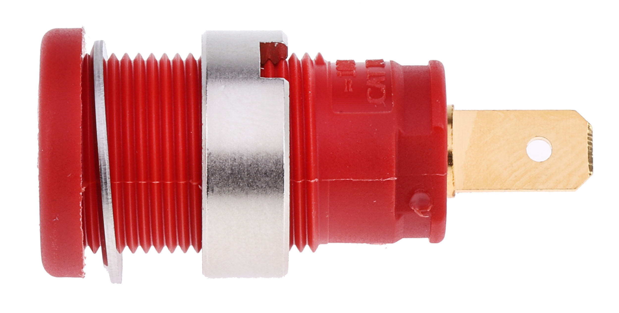 This is Red 4mm Socket Gold Plated 1000V ac/dc 25A manufactured by Hirschmann Test & Measurement. The manufacturer part number is 972355101. The product has a current rating of 25a. Moreover, the product has a nominal 1000v ac/dc voltage rating. In addition, female is the available "Gender" of the product. It has a decent red colour. Its accurate length is 32mm. It has a robust polyamide insulation material. The high-quality gold is used as contact plating material. It allows tab termination method. It comes in banana socket configuration. The connector has 4 mm size. The product is made from sturdy brass materials.