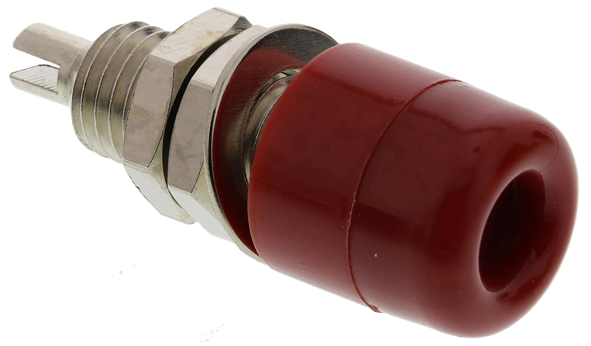 This is Red 4mm Socket Nickel Plated 30 V ac 60 V dc 32A manufactured by Schutzinger. The manufacturer part number is IBU401 RED. The product has a current rating of 32a. Moreover, the product has a nominal 30 v ac, 60v dc voltage rating. In addition, female is the available "Gender" of the product. It has a decent red colour. Its accurate length is 23mm. The high-quality nickel is used as contact plating material. It allows screw termination method. It has a robust nylon insulation material. The product is made from sturdy brass materials. It comes in banana socket configuration. The connector has 4 mm size. It contains a spring contact .