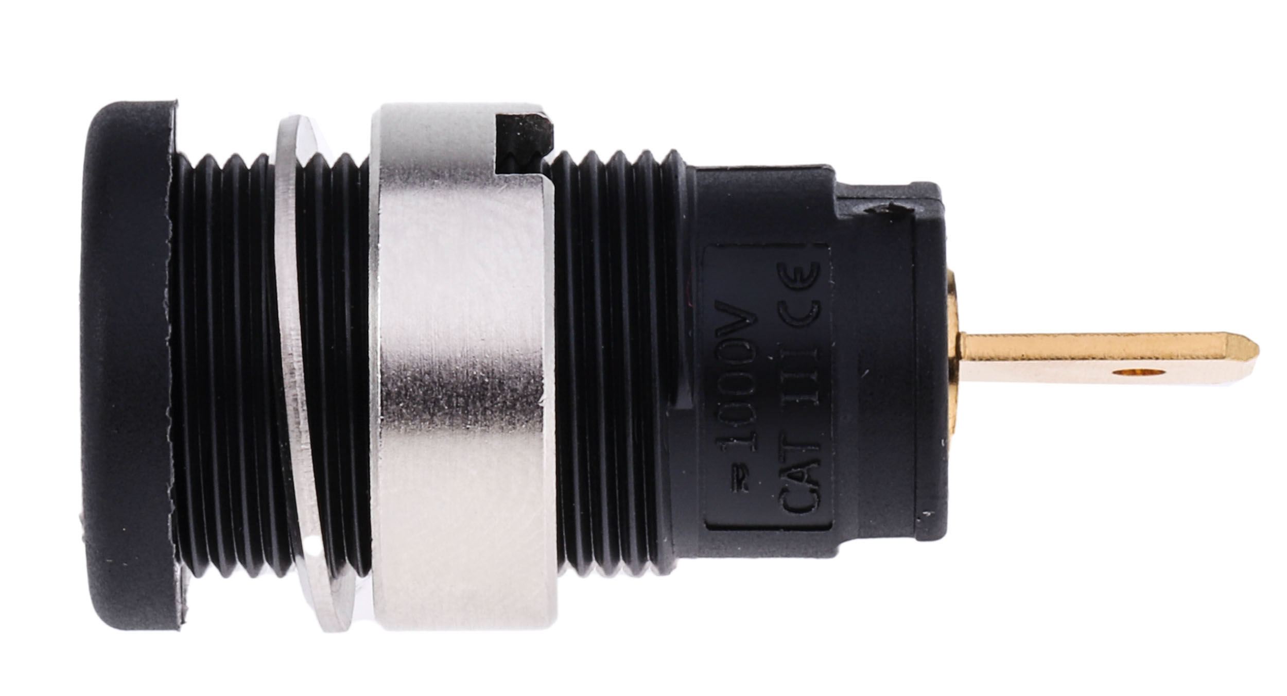 This is Black 4mm Socket Gold Plated 1000V ac/dc 25A manufactured by Hirschmann Test & Measurement. The manufacturer part number is 972355100. The product has a current rating of 25a. Moreover, the product has a nominal 1000v ac/dc voltage rating. In addition, female is the available "Gender" of the product. It has a decent black colour. Its accurate length is 32mm. It has a robust polyamide insulation material. The high-quality gold is used as contact plating material. It allows tab termination method. It comes in banana socket configuration. The connector has 4 mm size. The product is made from sturdy brass materials.